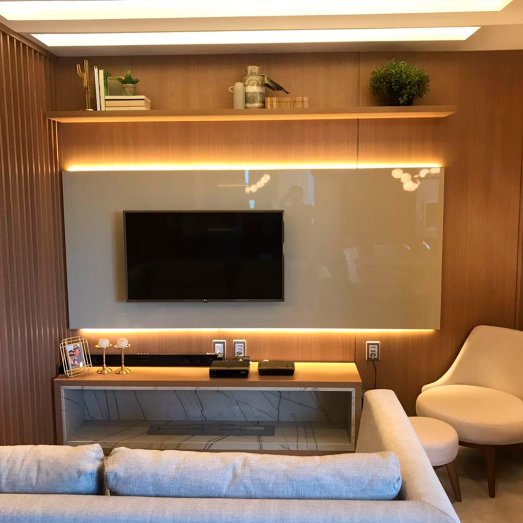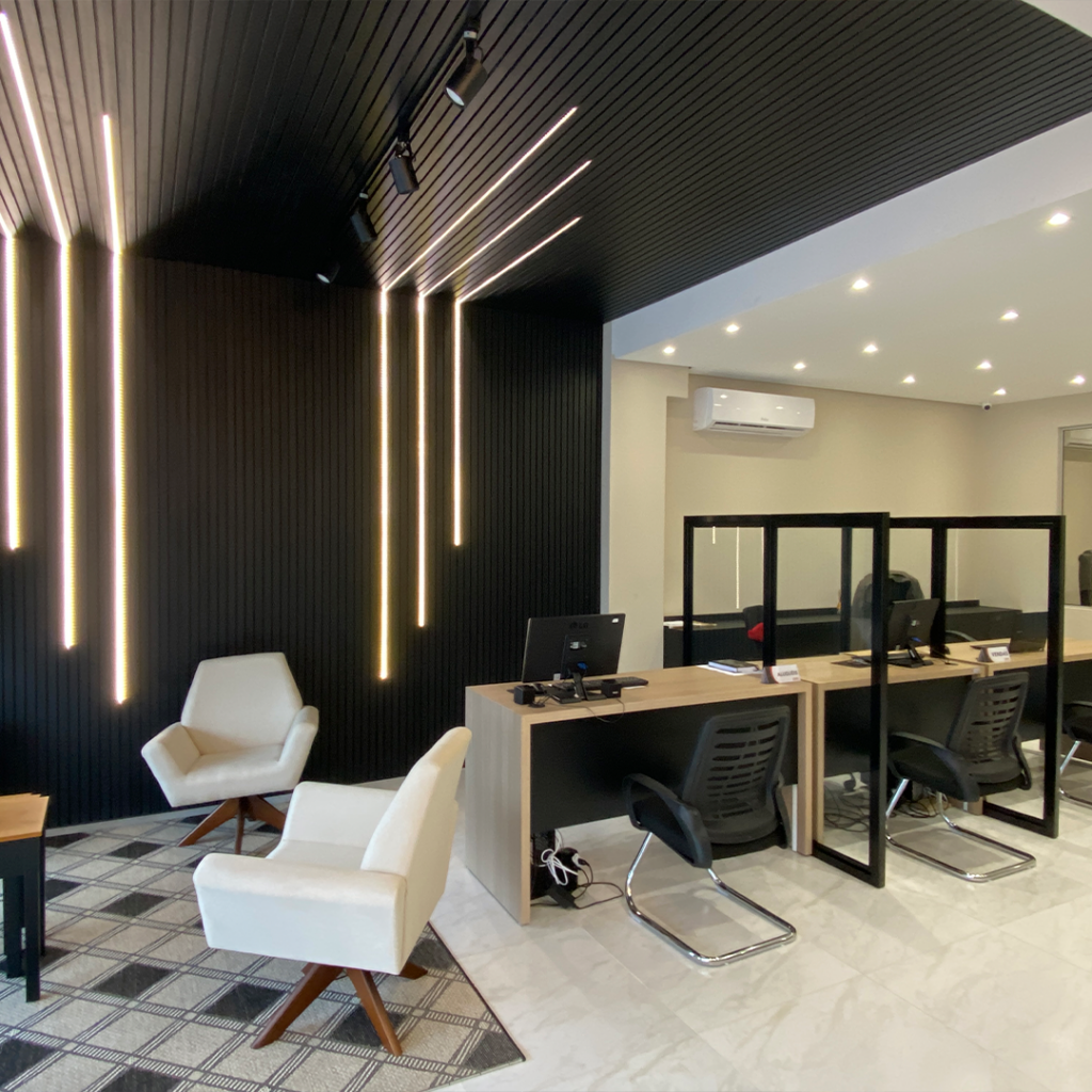 Atendemos projetos residenciais e corporativos, sempre com acompanhamento técnico desde a concepção até a instalação final.